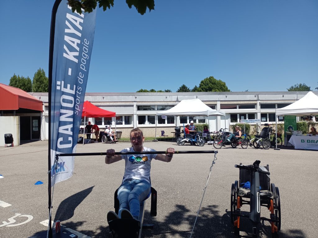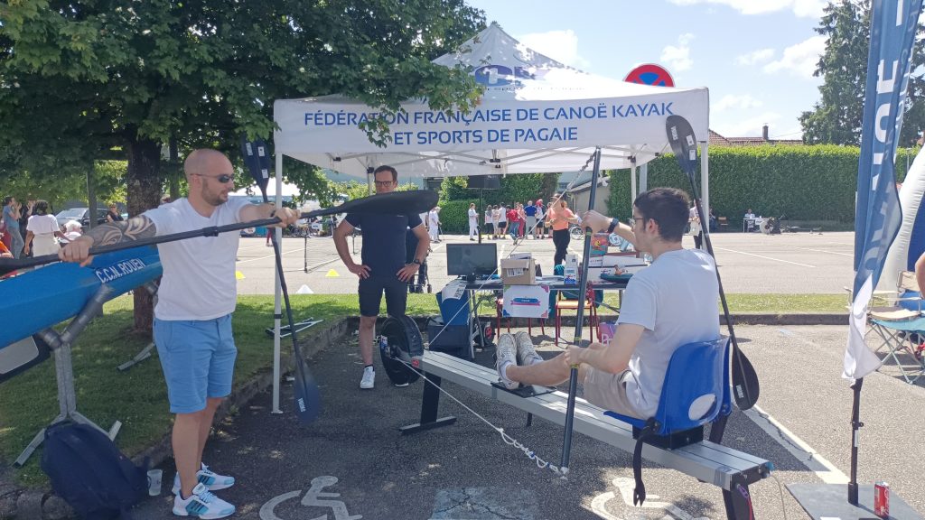 Un grand nombre de personnes en situation de handicap sont venus essayer la machine à pagayer et échanger sur les activités du club (voir la photo ci- dessous).